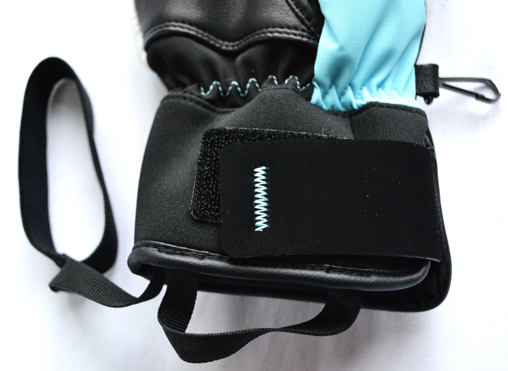 Handgelenksschlaufen reduzieren das Risiko, die Handschuhe zu verlieren, und ein Karabinerhaken ermöglicht es, die Handschuhe schnell miteinander zu verbinden