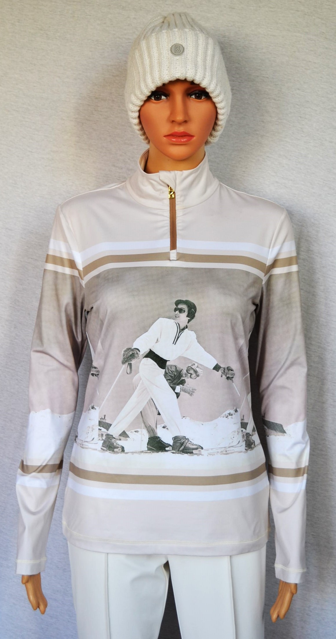 BOGNER DAMEN BELINE SKI LONGSLEEVE FIRST LAYER STRETCH UNTERZIEHER BEIGE RETRO MUSTER Gr 36 S NEU