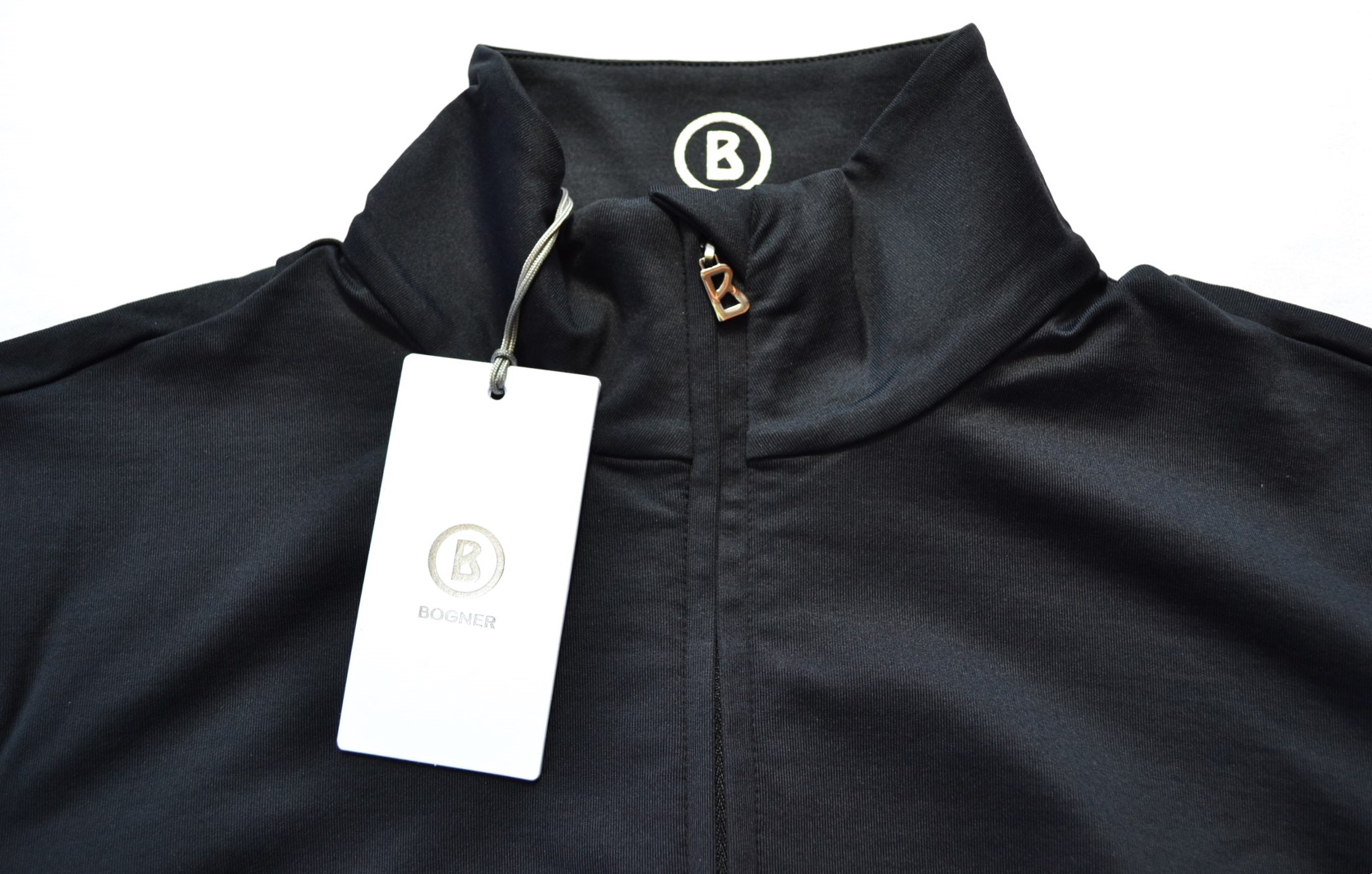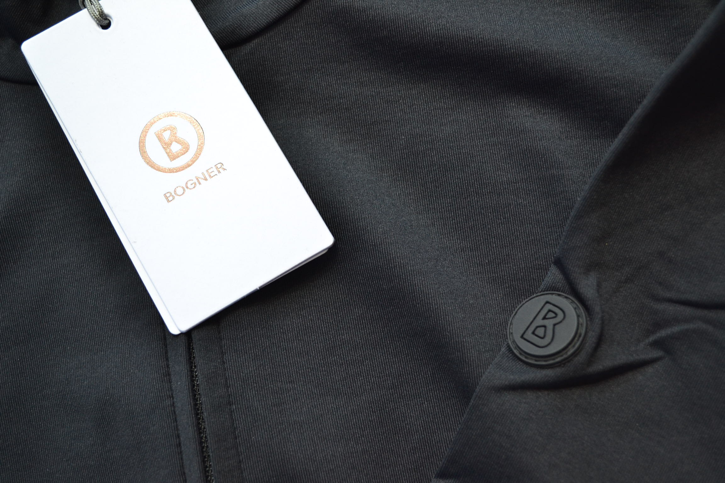 BOGNER-Logo auf Schlüsselbeinhöhe