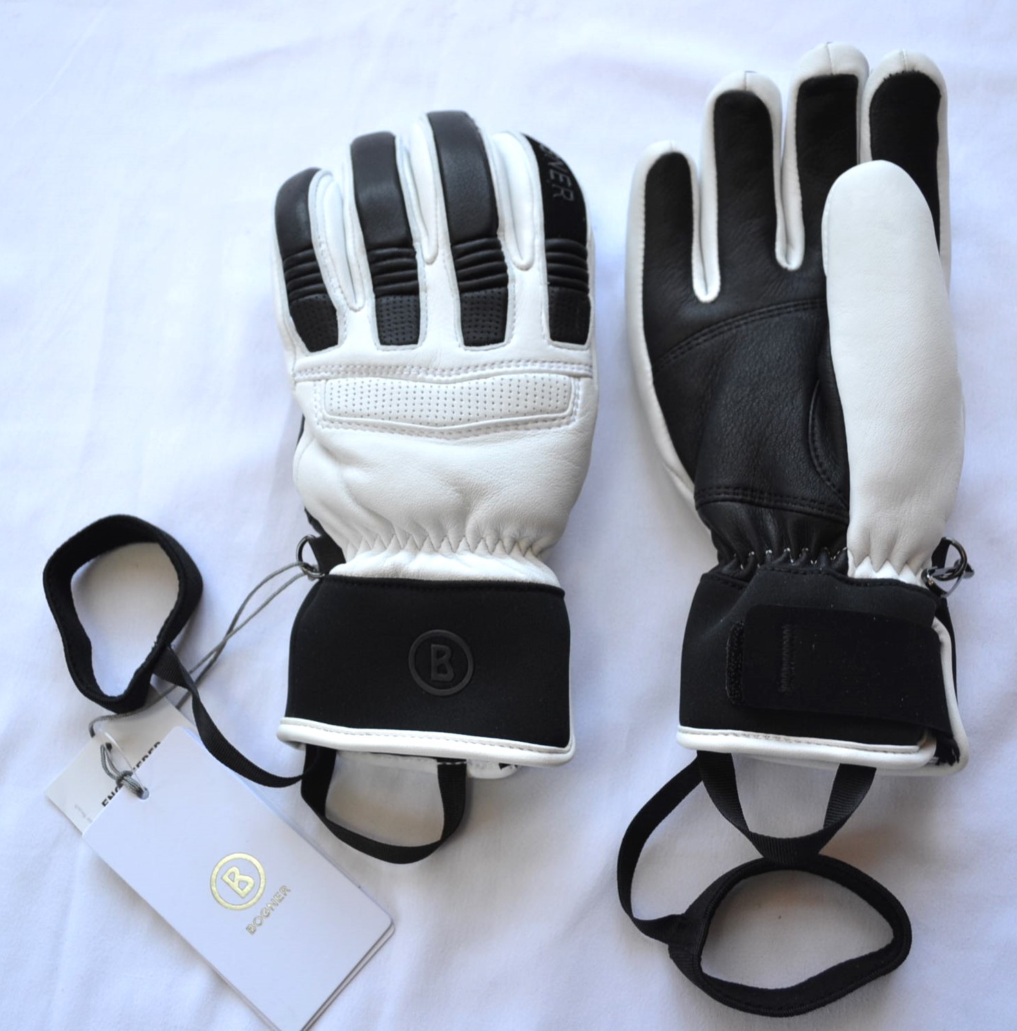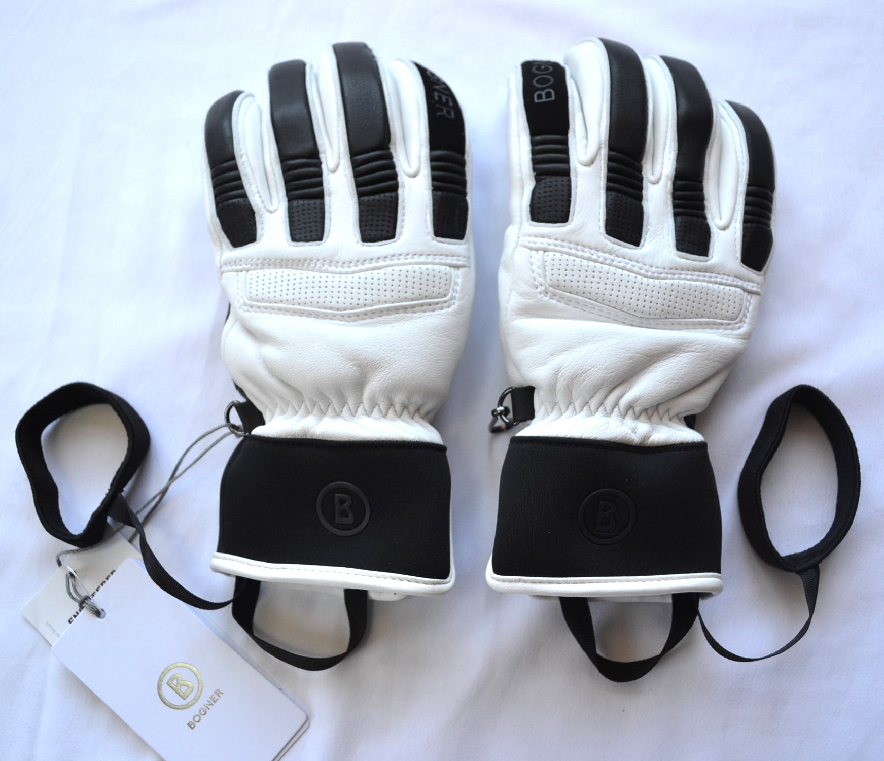 BOGNER DAMEN SKI HANDSCHUHE GLOVES 90% LEDER WEIß-SCHWARZ Gr 6,5 7 7,5 8 S M L NEU