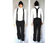Mittels Klettverschlüssen abnehmbare und längenverstellbare Hosenträger im Logo-Design