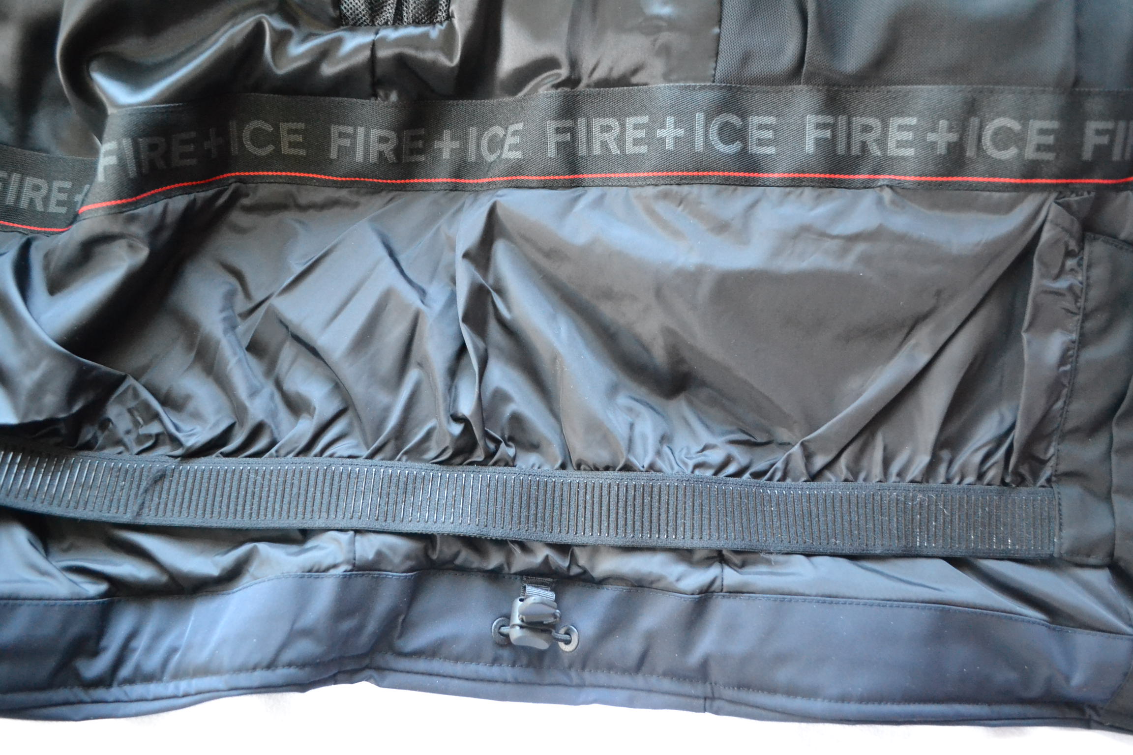 Logo-Rubber-Patch auf dem linken Ärmel sowie eine seitliche Skipass-Tasche