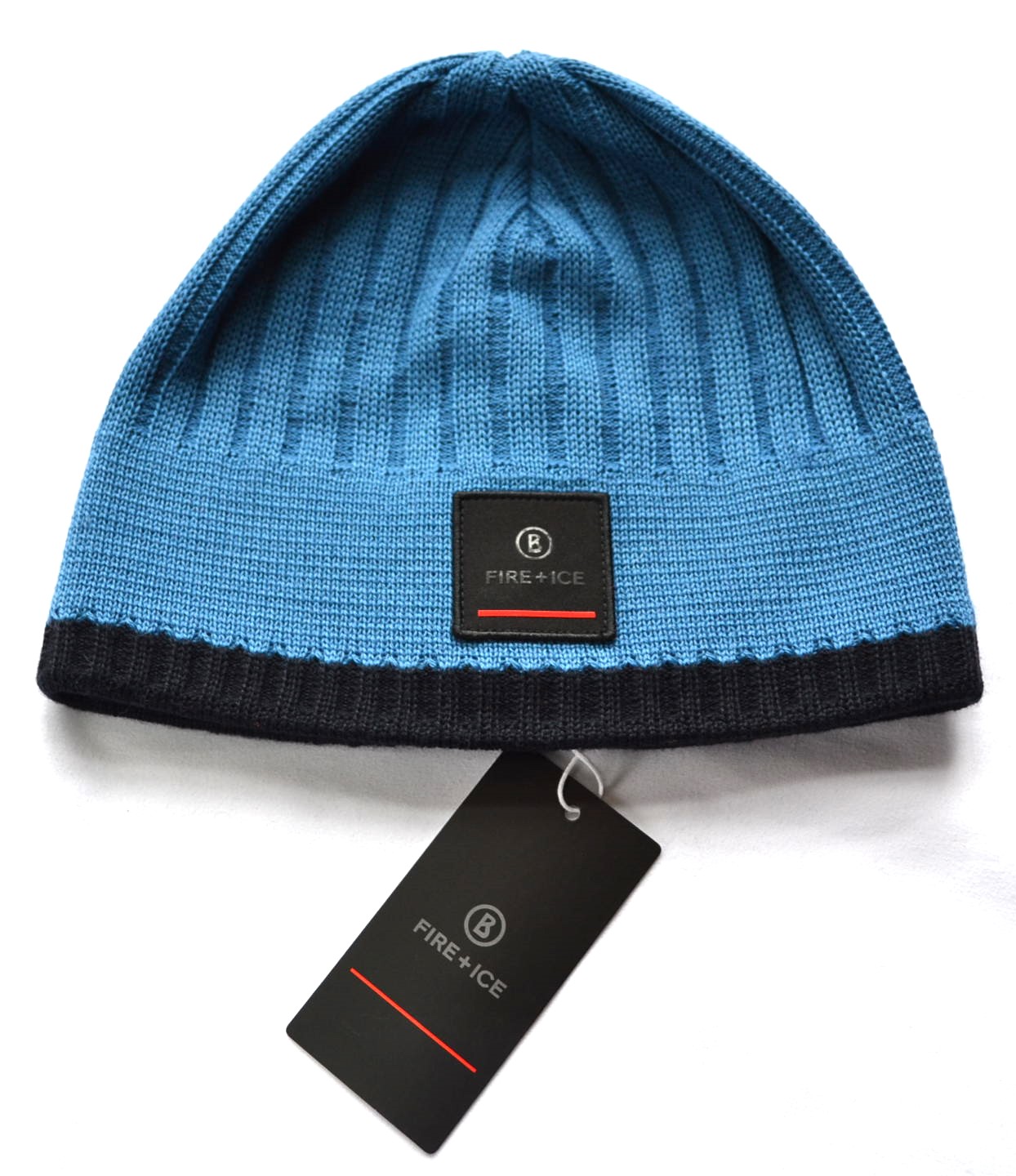BOGNER FIRE+ICE EASTAN HERREN DAMEN MÜTZE 50% WOLLE WOLLMÜTZE MITTELBLAU NEU