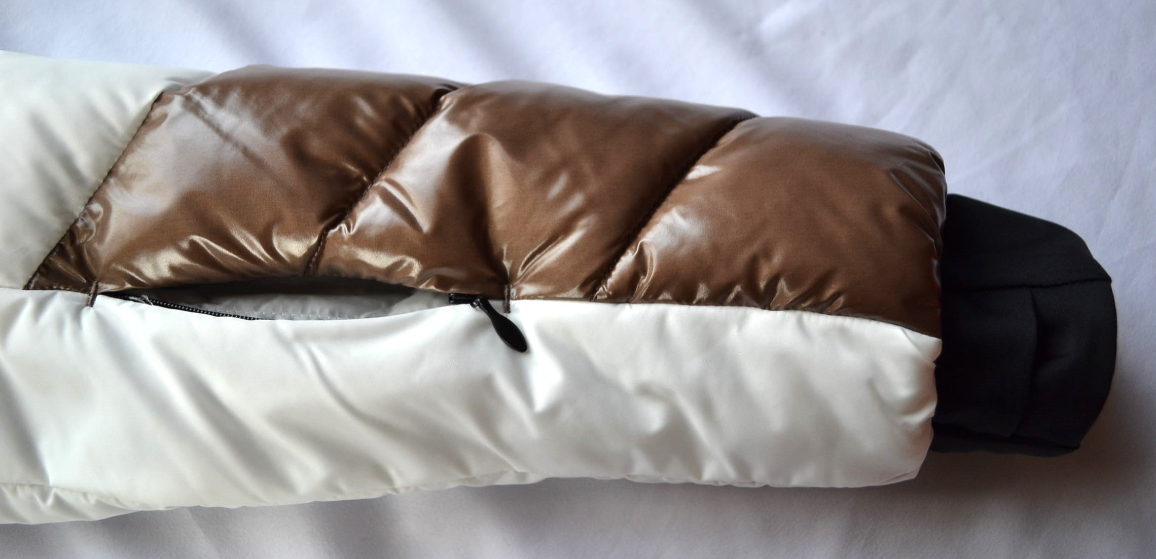 Mix aus glänzender und matter Qualität mit recyceltem Polyamid, wasserabweisend