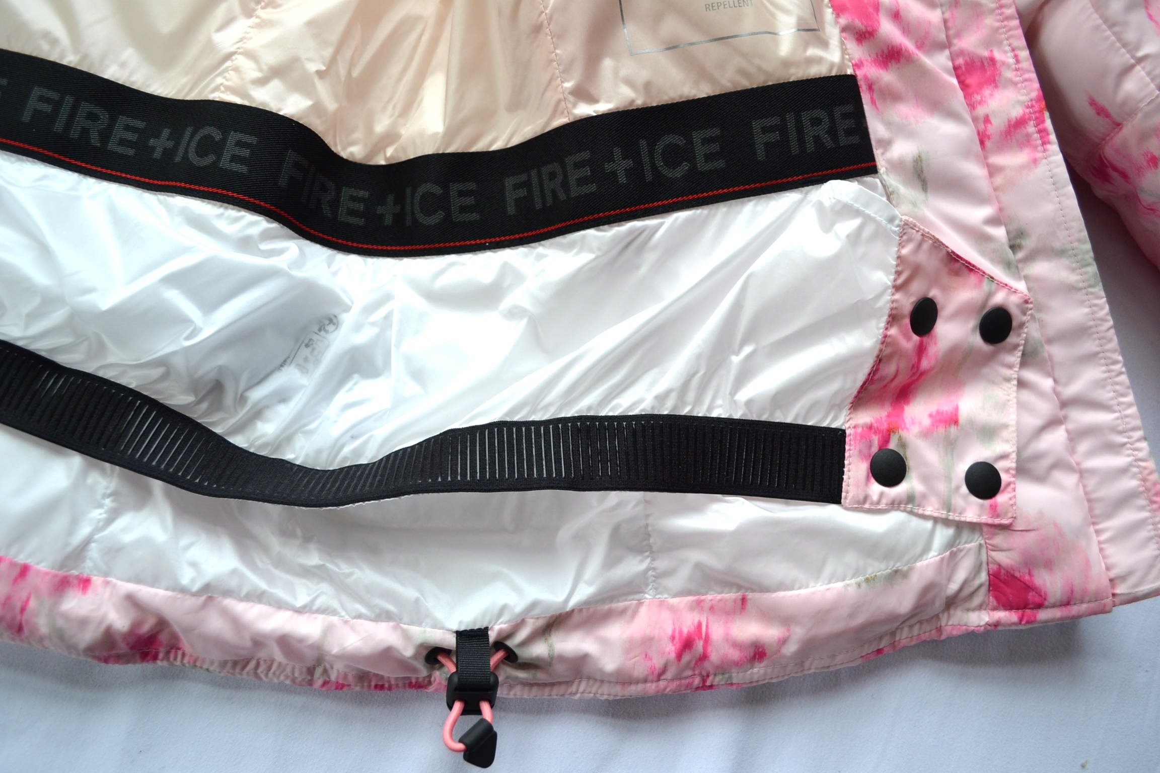 Die Jacke punktet nicht nur durch ihre funktionalen Eigenschaften, sondern auch durch ihre ikonischen Logo-Details. Ein FIRE+ICE Rubber-Patch und eine Skipasstasche am linken Ärmel sowie ein FIRE+ICE Rubber-Tape auf der inwendigen Verschlussleiste setzen stilvolle Akzente. Der Saumabschluss ist mit einem inwendig justierbaren Gummizug ausgestattet, der für eine optimale Passform sorgt.