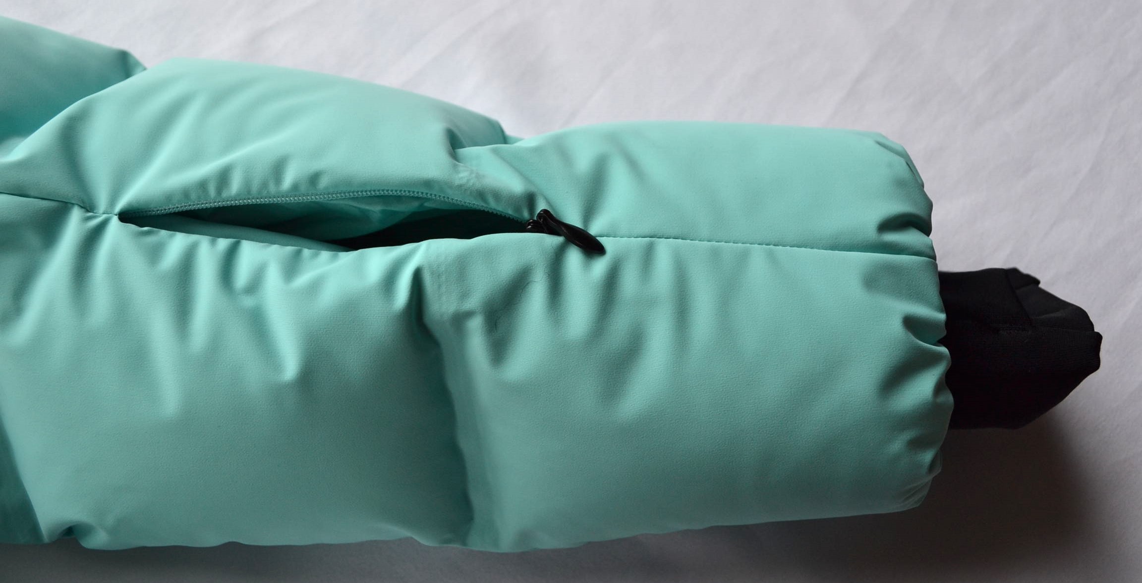 Ärmelabschlüsse mit justierbarem Druckknopfriegel und inwendig fixierten Nylon-Daumenschlaufen