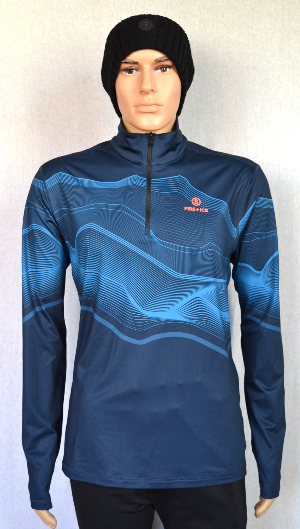 BOGNER FIRE+ICE PASCAL HERREN SKI LONGSLEEVE FIRST LAYER STRETCH UNTERZIEHER BLAU MUSTER Gr L 50 NEU