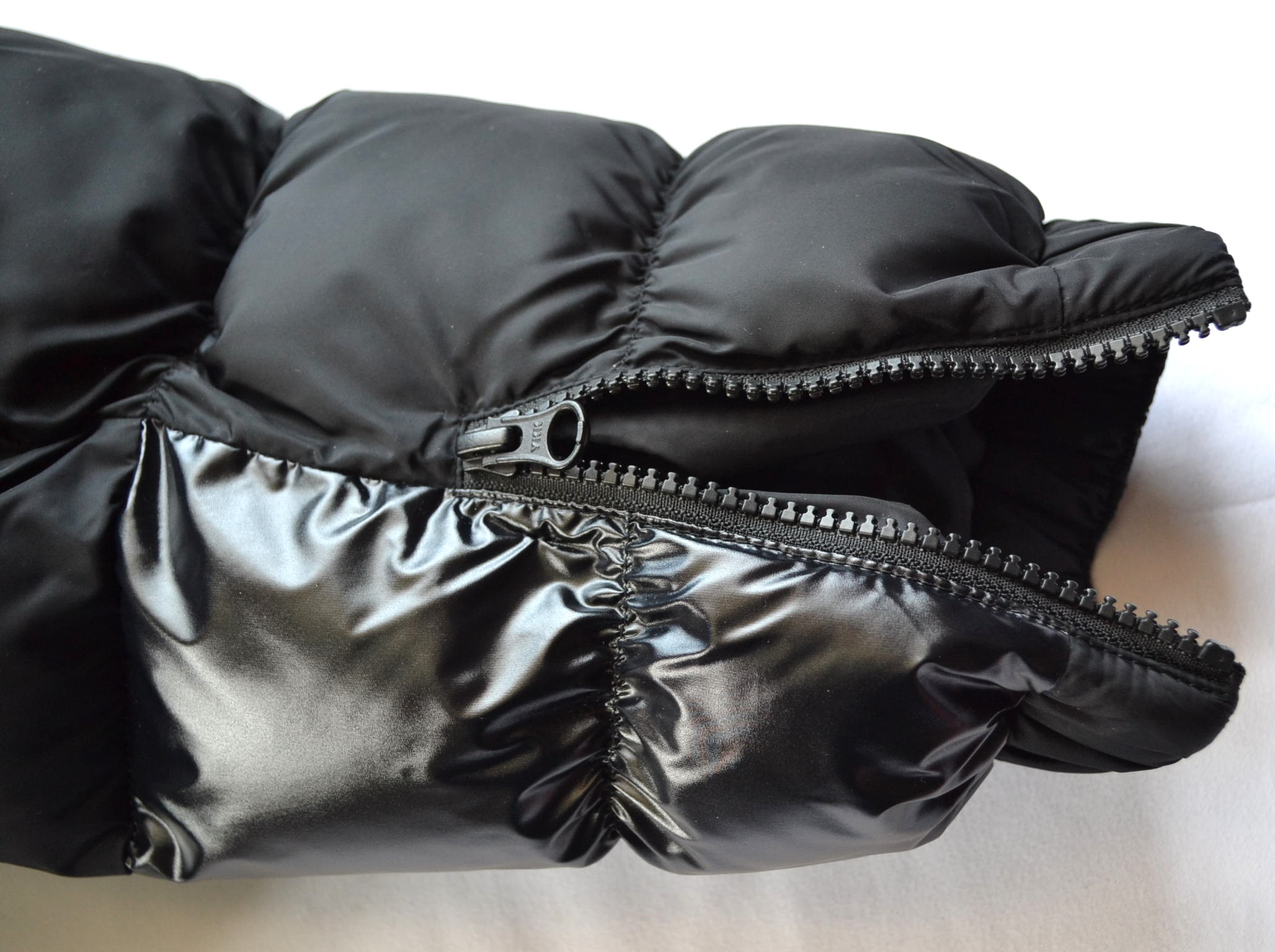 Geschlossen mit Zwei-Wege-Zipper mit B-Logo-Anhänger und Zippergarage, unterlegt mit Logoblende