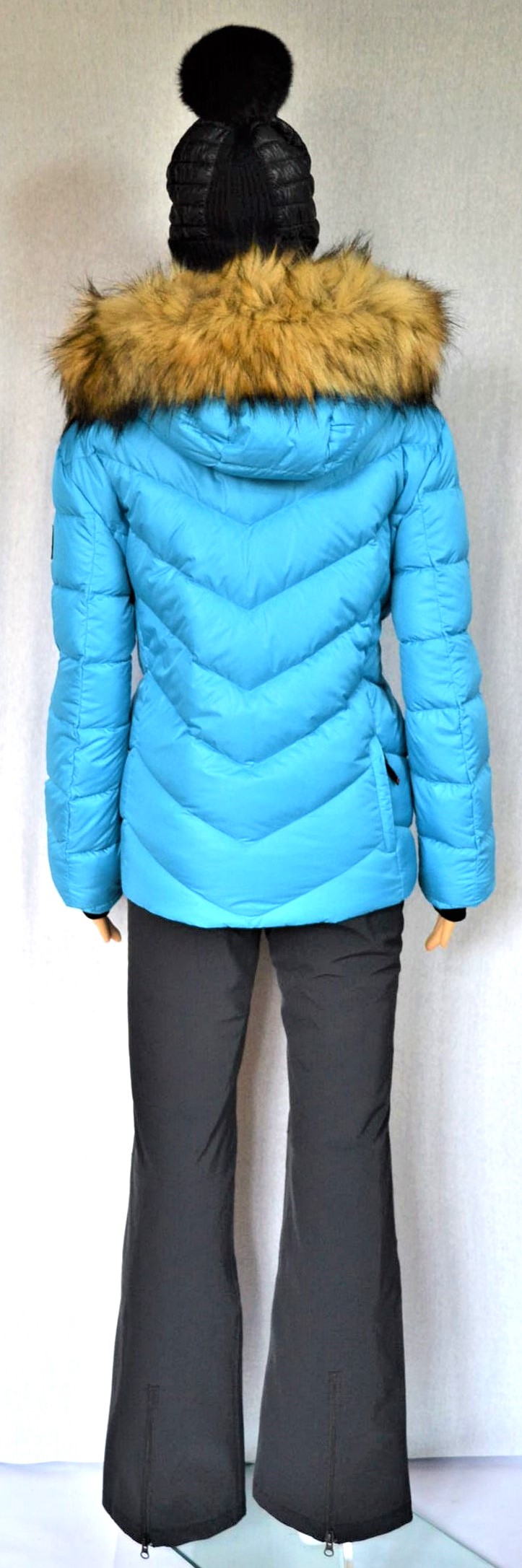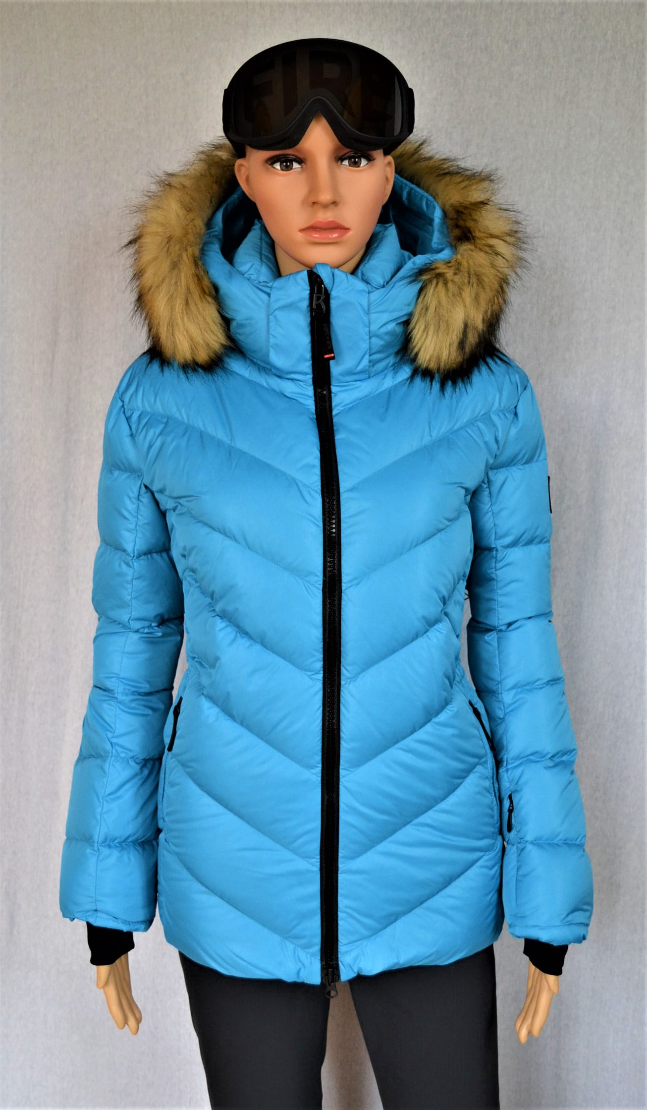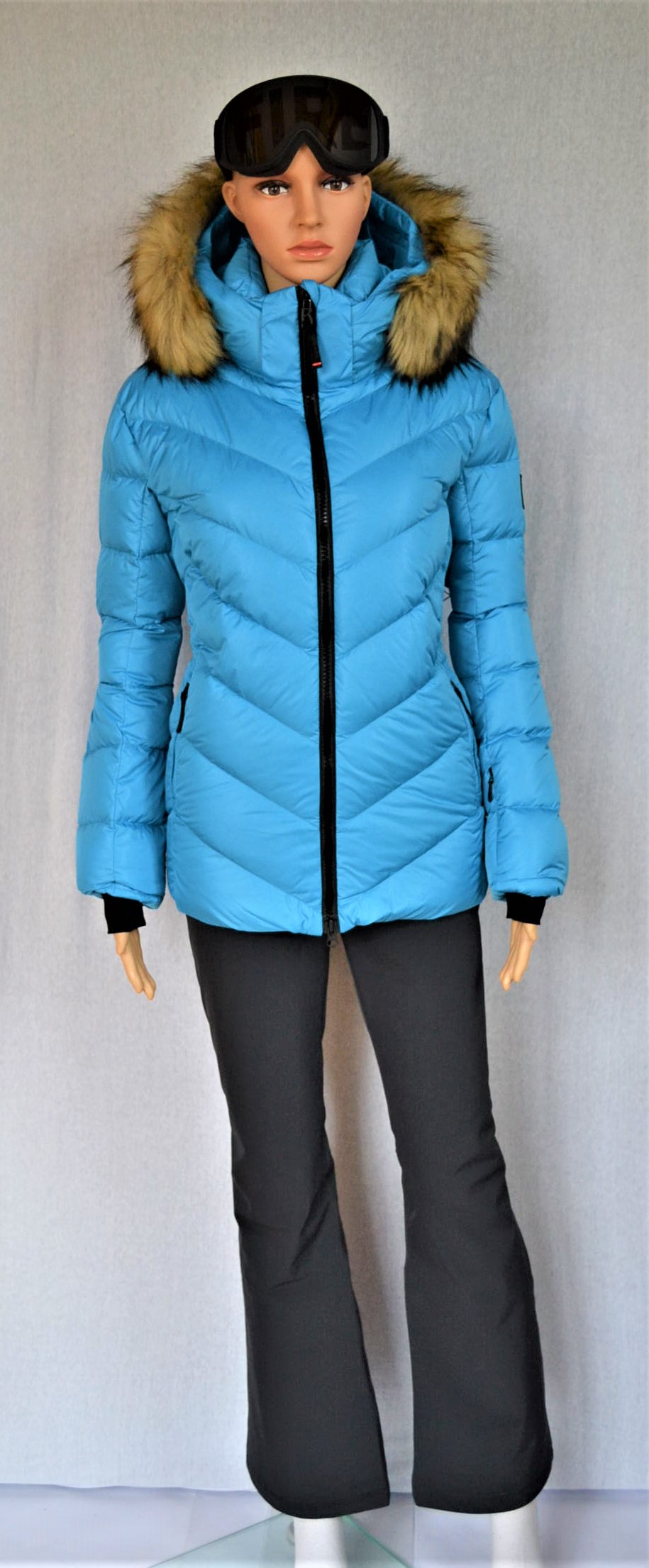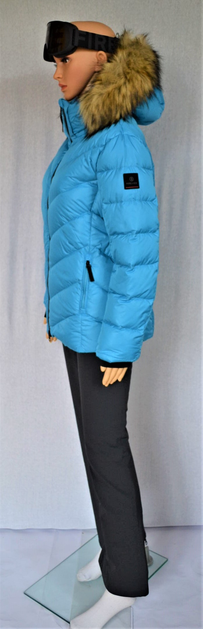 BOGNER FIRE+ICE SASSY 2 DAMEN DAUNEN SKIJACKE HELLBLAU MIT FELLKRAGEN Gr 44 XL NEU