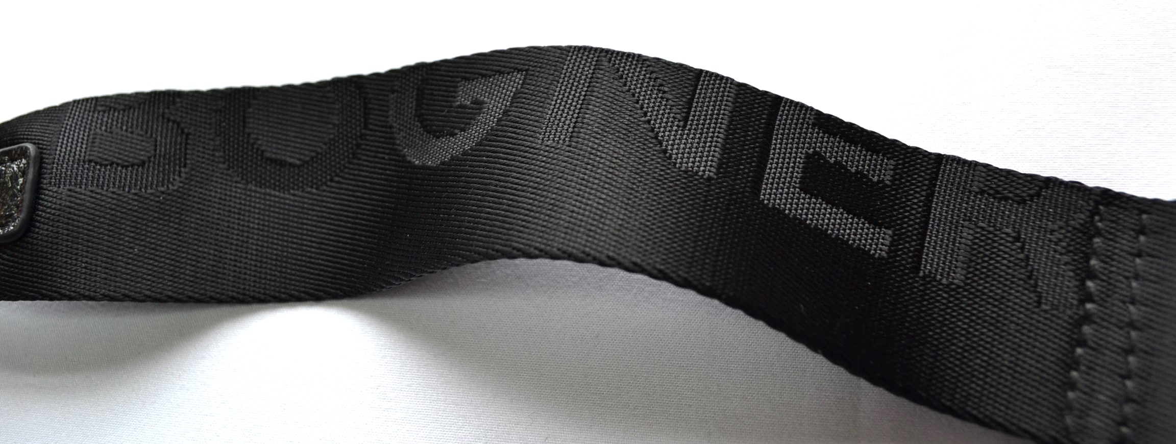 Textilriemen mit eingewebtem Label-Schriftzug;