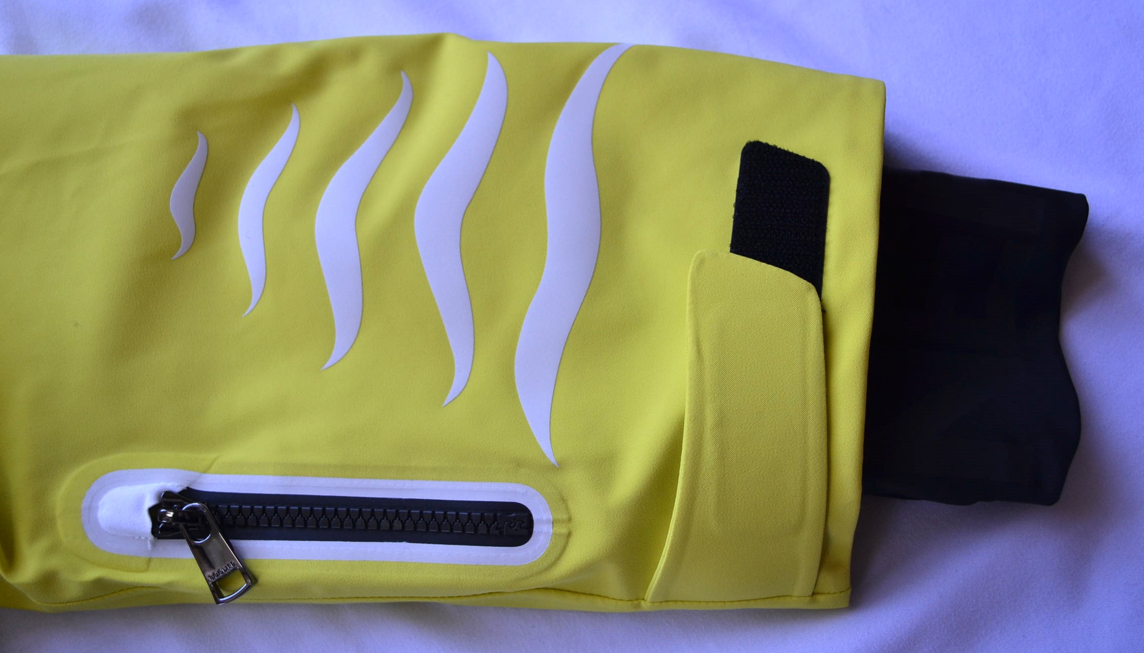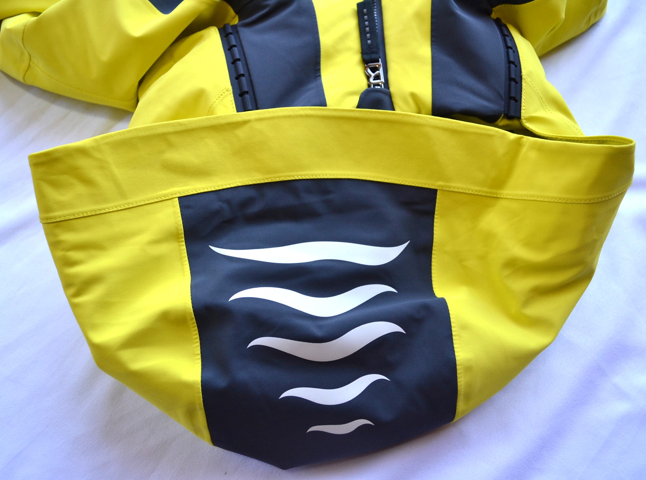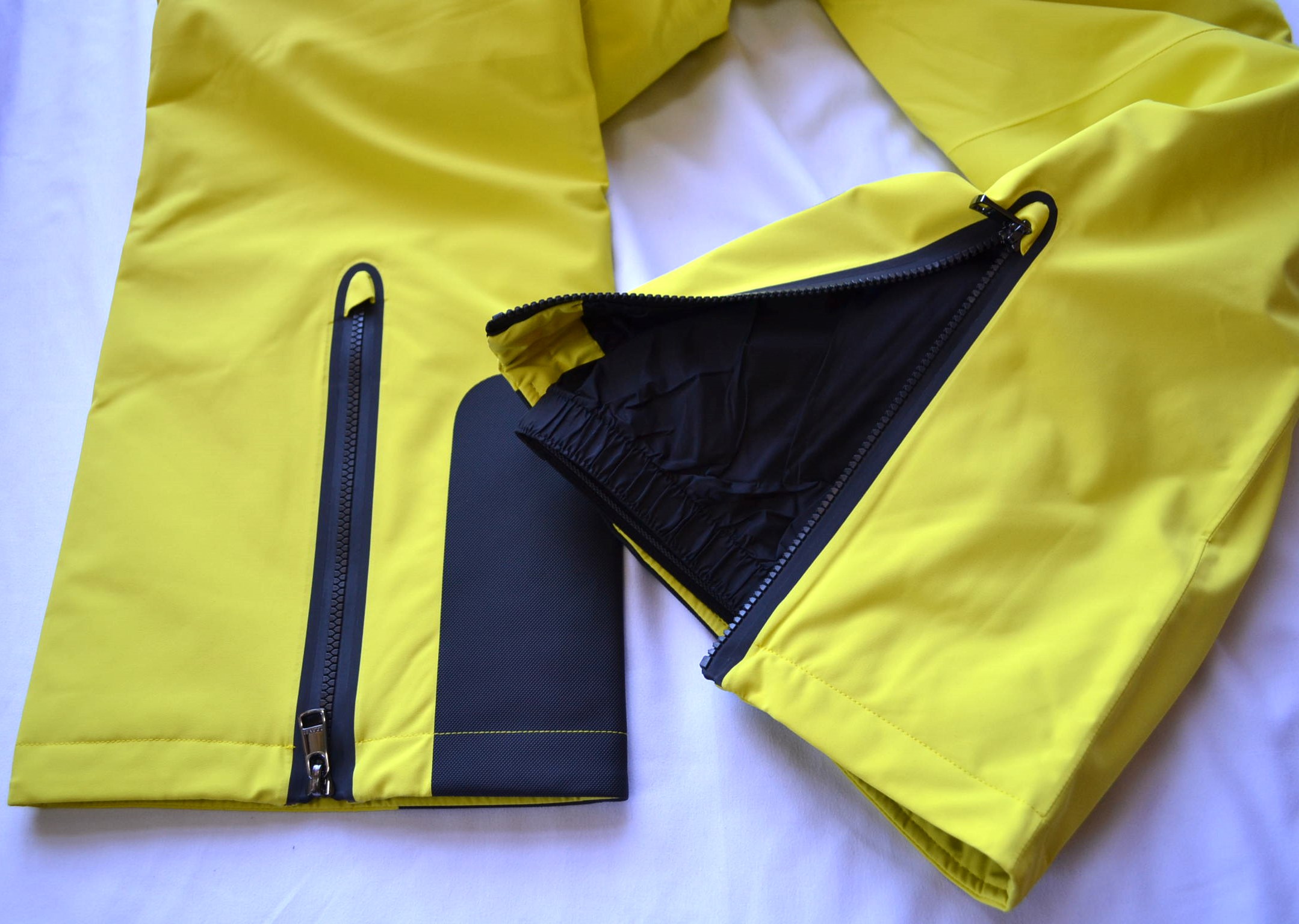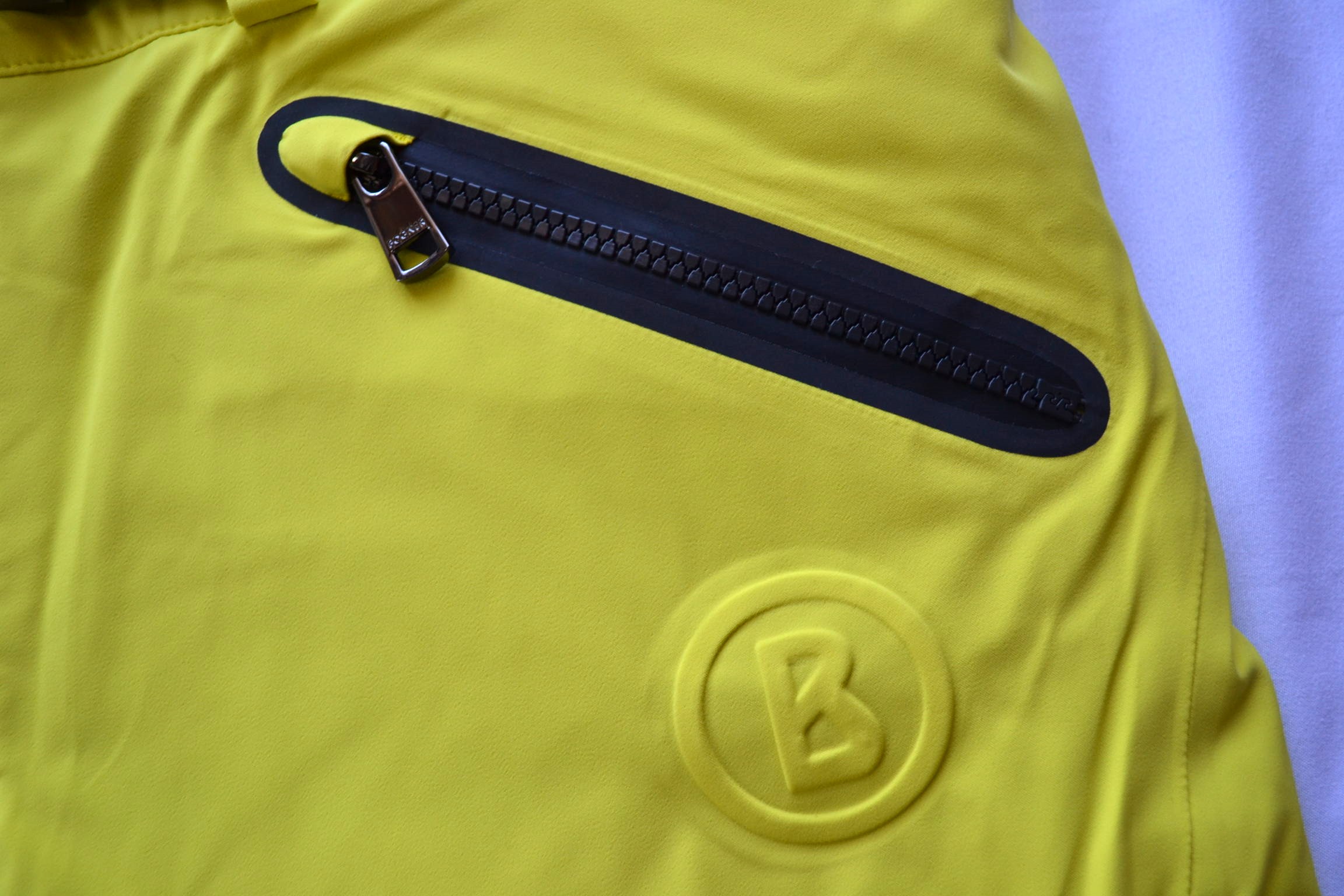 Logo Patch auf dem linken Ärmel sowie eine seitliche Skipass-Tasche