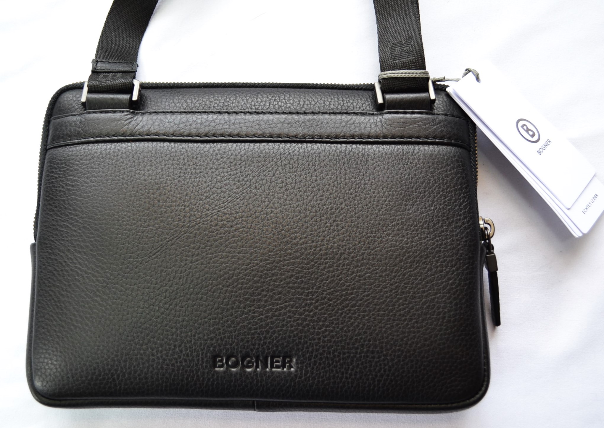 BOGNER JASPER LINUS DAMEN HERREN LEDER UMHÄNGETASCHE MIT GURT TASCHE SCHWARZ NEU