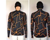 Ärmel mit Flammendruck, verstellbarem Klettverschluss und innenliegendem elastischem Bündchen mit Daumenschlaufe und Logo-Schriftzug, linke Seite mit Logo-Drucken und Skipasstasche mit Reißverschluss