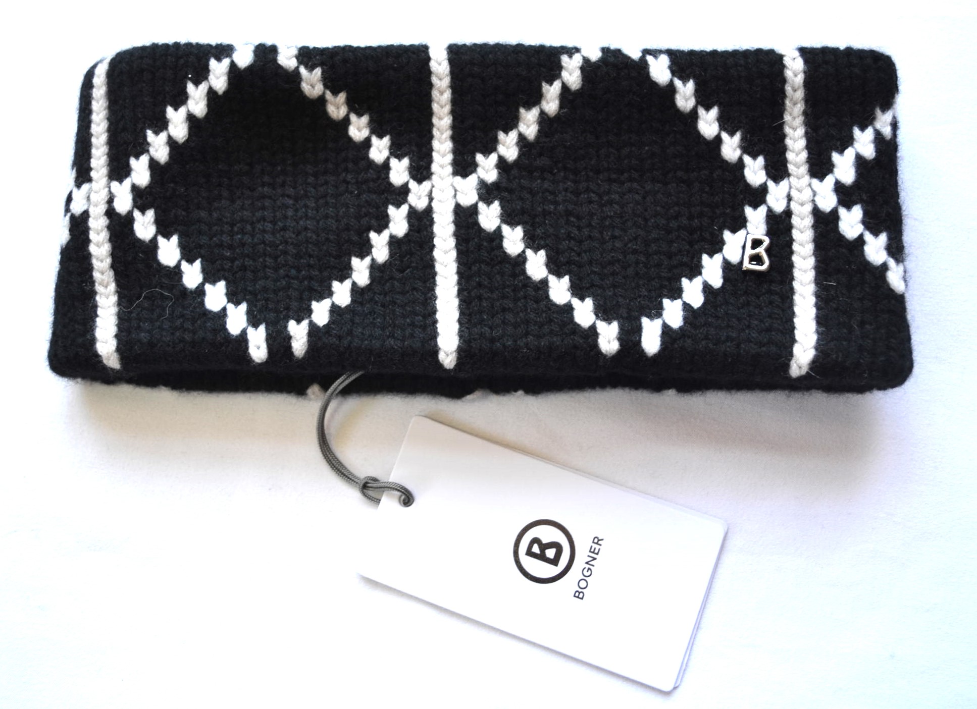 BOGNER LOCA 100% KASCHMIR DAMEN STIRNBAND SCHWARZ-WEIß LOGO NEU
