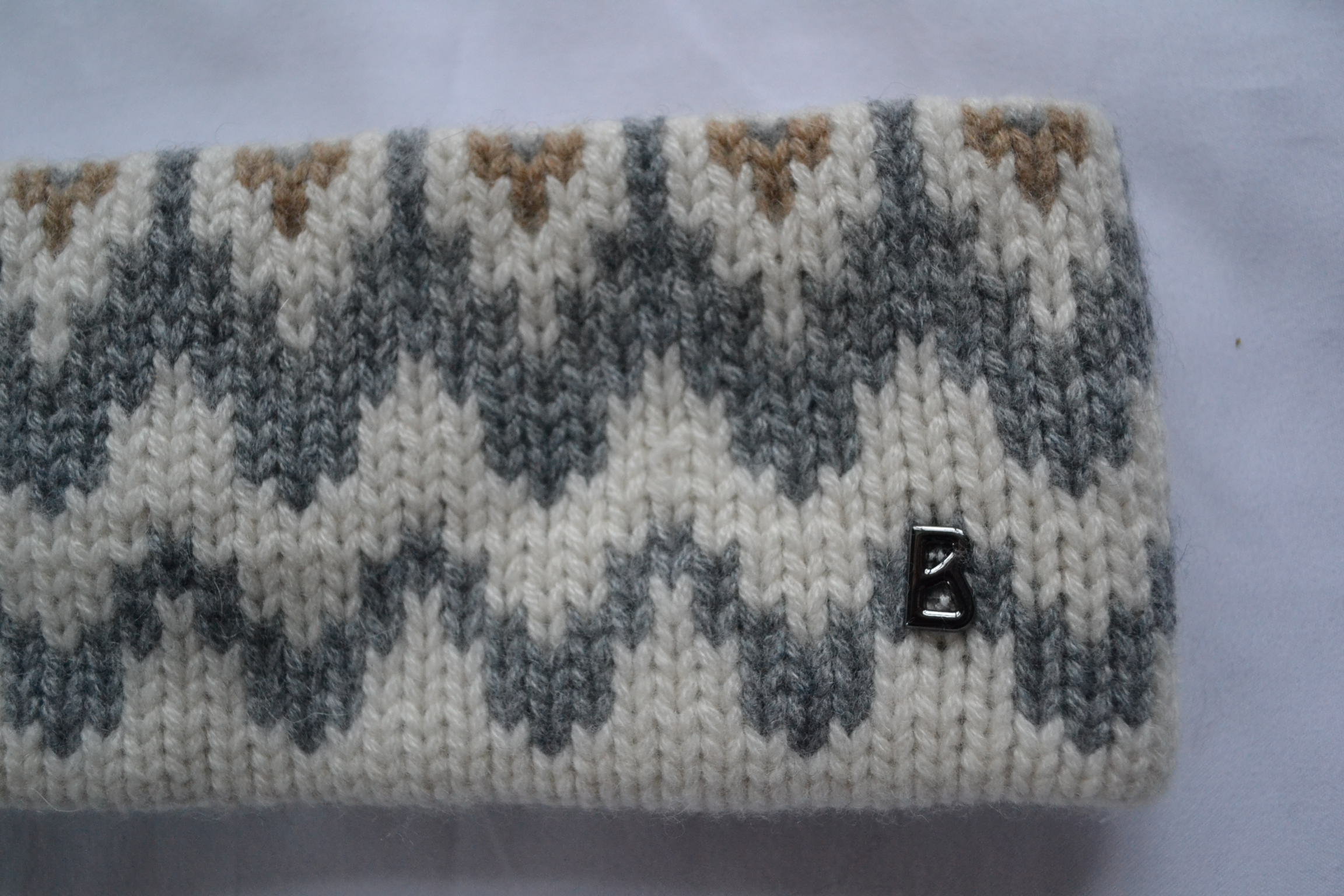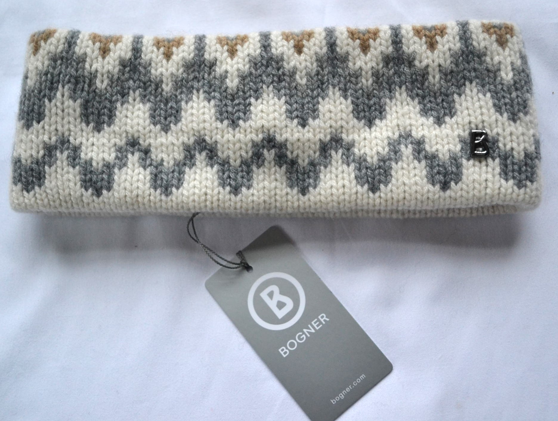 BOGNER LOCA 100% KASCHMIR DAMEN STIRNBAND WEIß-GRAU-BEIGE LOGO NEU