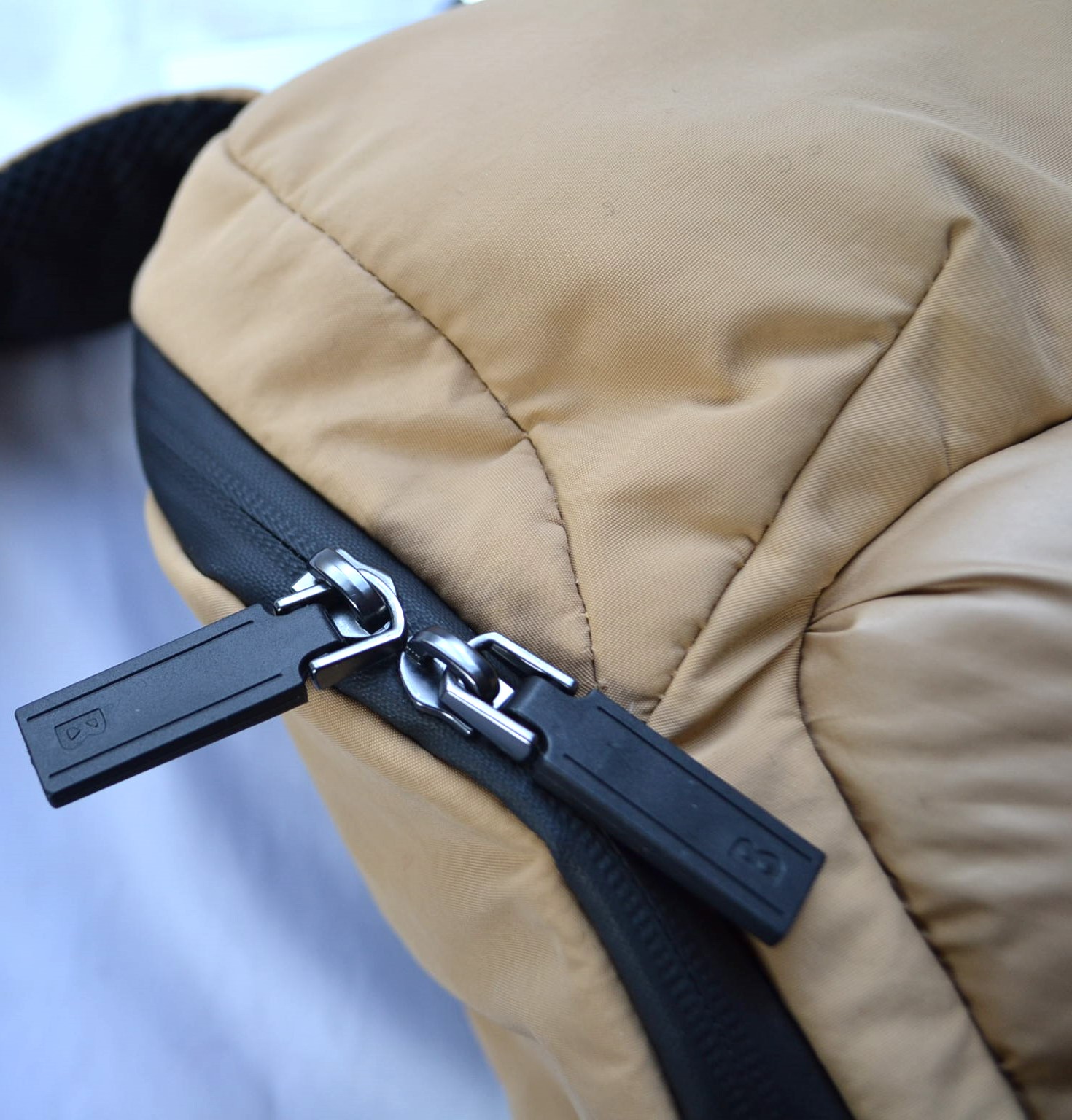Rucksack wird mit Zipper geschlossen