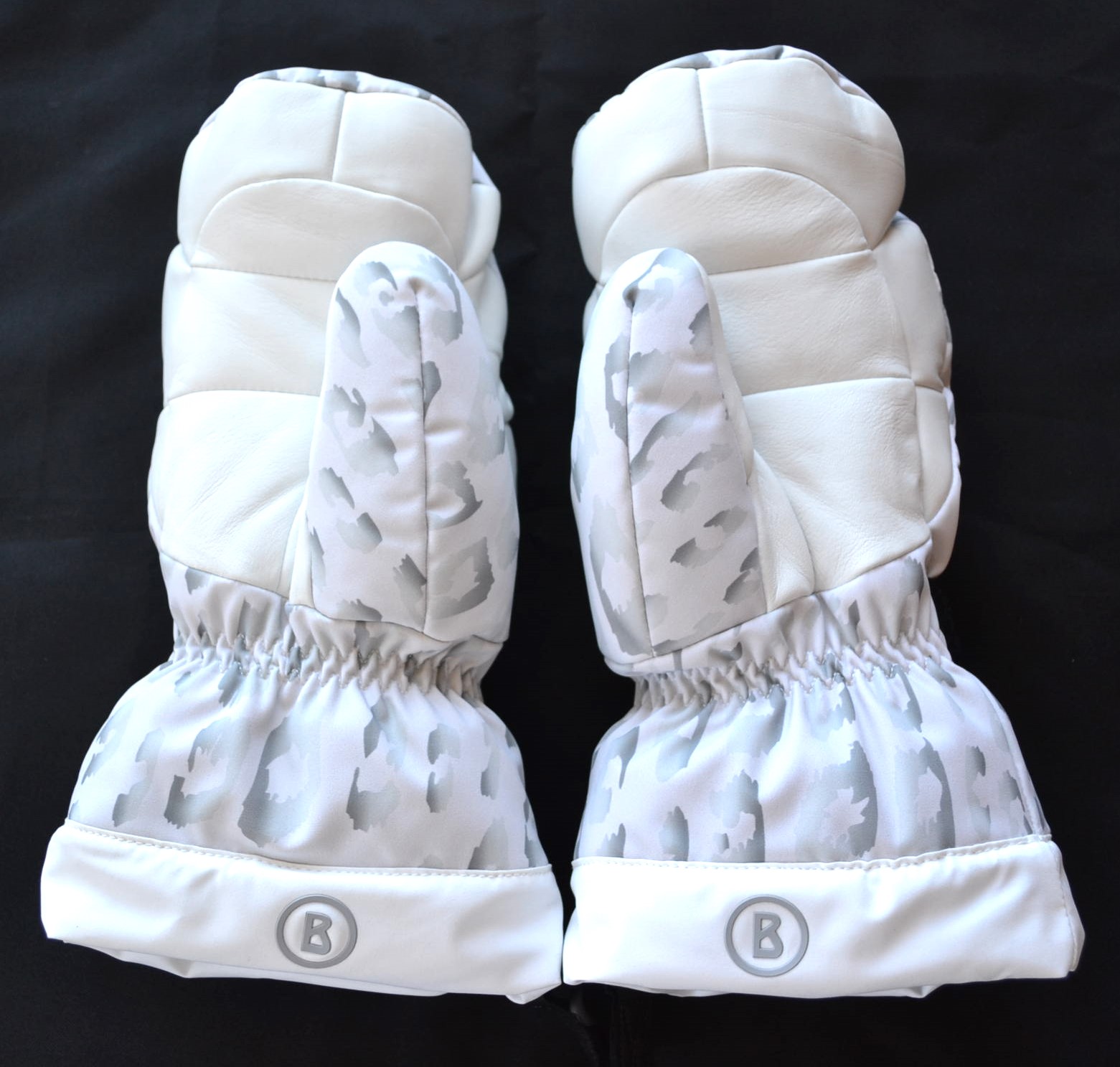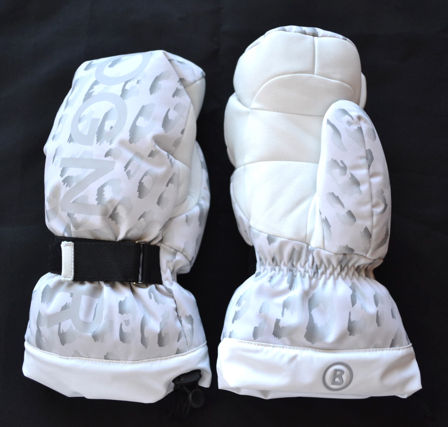 BOGNER ORELLA DAMEN OVERSIZED SKI FÄUSTLINGE WEIß-GRAU STADT HANDSCHUHE TEILLEDER Gr 7 S NEU