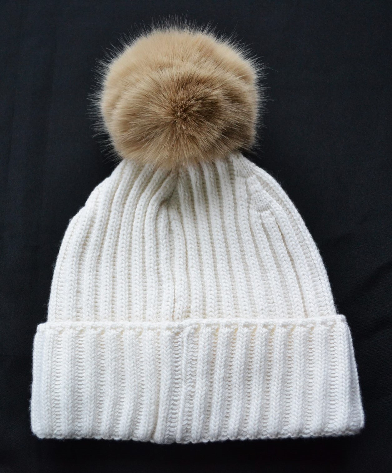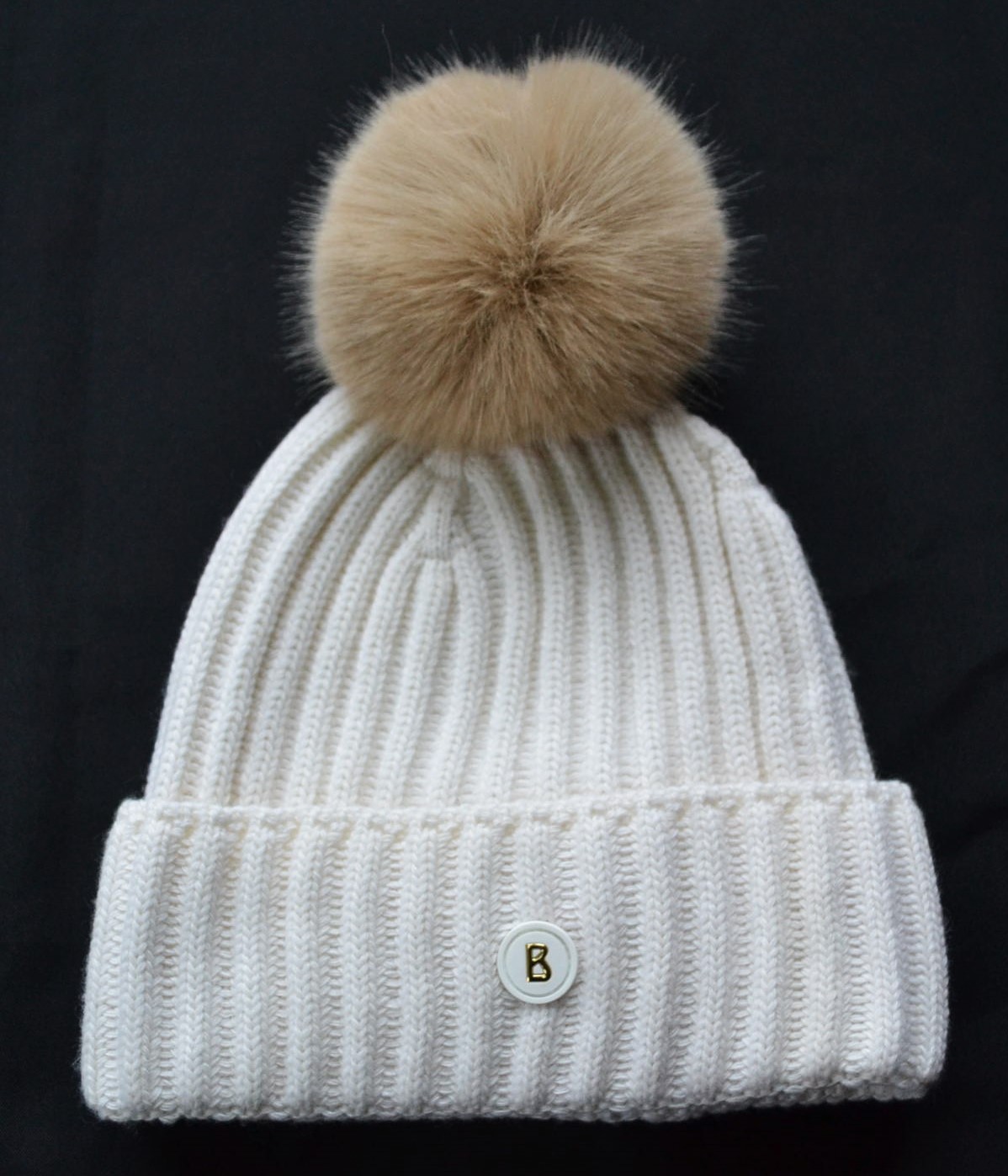 Bommel aus echtem Lammfell mit Druckknopffixierung – trennbar, damit mann die Mütze waschen kann