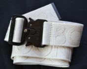 gewebte Gürtel mit Metallschließe und Logo Relief