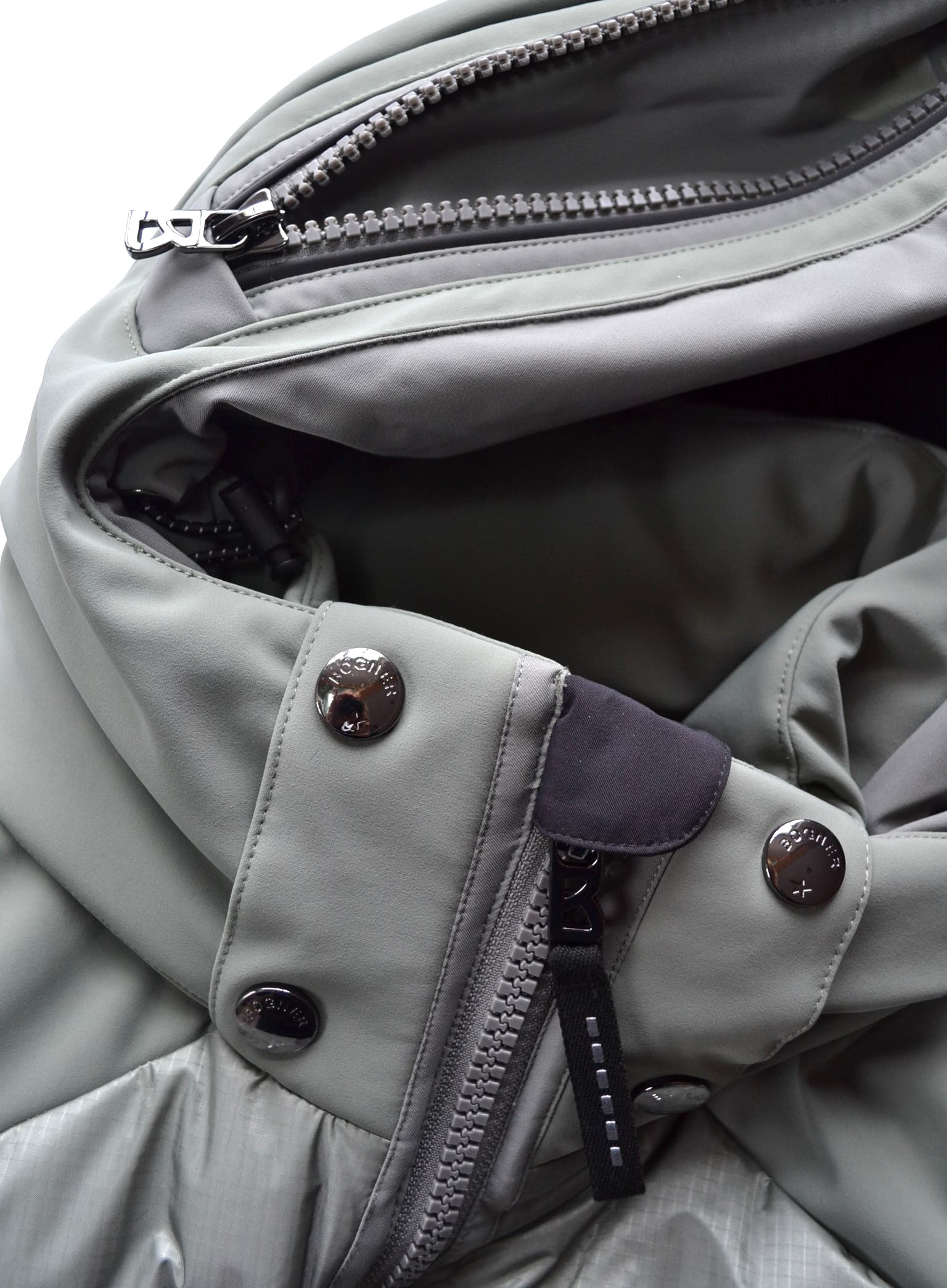 In Performance-Verarbeitung aus Softshell mit Wattierung im Daunen-Mix sowie technischer Füllung überzeugt die Skijacke als Allrounder für den Wintersport. In der Kapuze integrierte Luftungsschlitz mit Logo Schriftzug, der Zwei-Wege-Verschluss sowie funktionale Zip-Taschen runden das durchdachte Design ab.